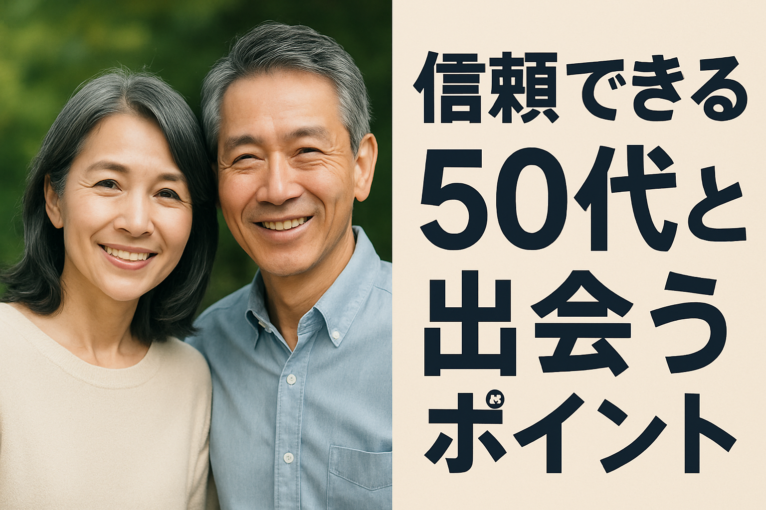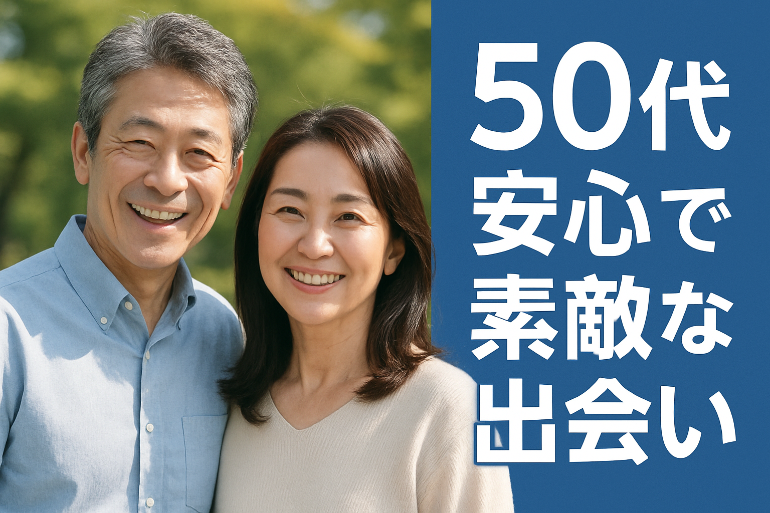 安心できる50代出会いの場を見つけて、自信を持って新しい一歩を踏み出しましょう。安全な環境で素敵なパートナーとの出会いを楽しんでください。